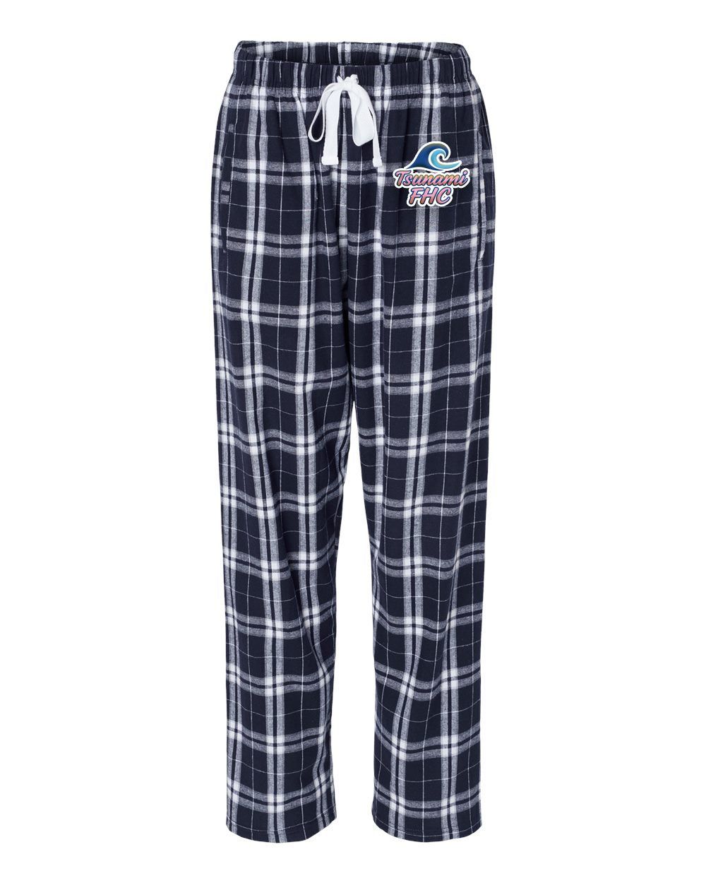 These Tsunami logo LADIES Flannel PJ Pants are made of 4.3 oz., 100% cotton flannel and feature a Folded waist band, Exterior twill drawcord, Welt pockets with matching self-fabric pocket